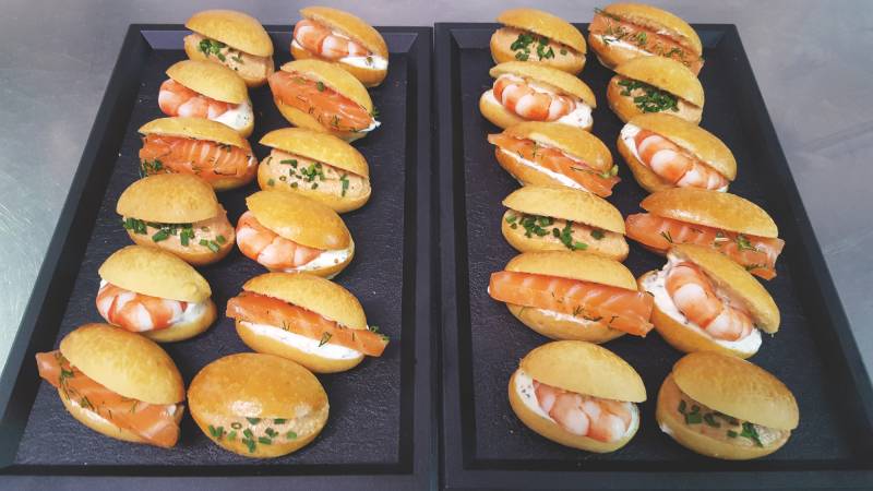 Notre brigade de cuisiniers repense continuellement les recettes de nos pièces cocktail pour vous proposer des nouveautés régulièrement et de saison.